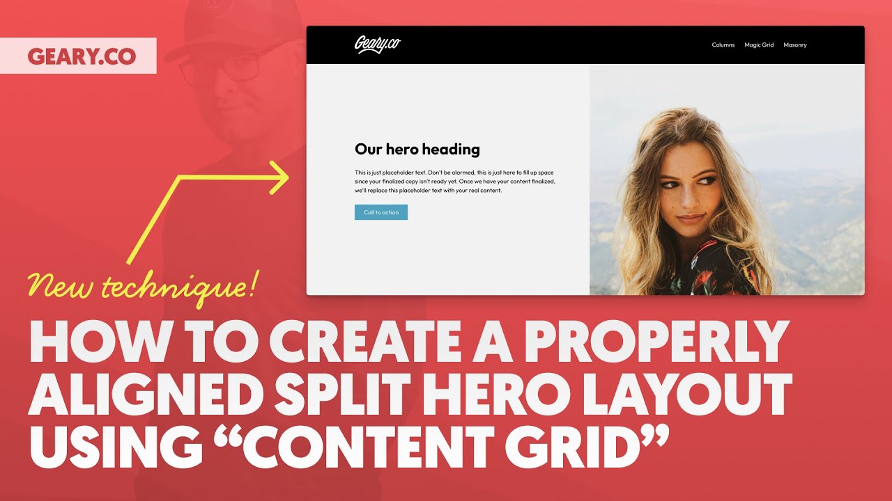 Full-Bleed Split Hero layouts are popular but not all that easy to get right. If you want to make the entire thing full width, that's pretty simple, but the requirements usually call for maintaining proper content alignment with the rest of the page's content.